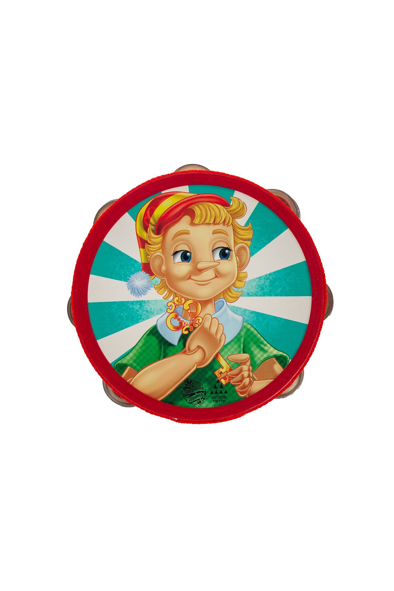 В гостях у сказки: На бубне изображен тот самый Буратино — каким мы его любим с детства. Играя, ребенок будет вспоминать приключения озорного деревянного мальчишки.