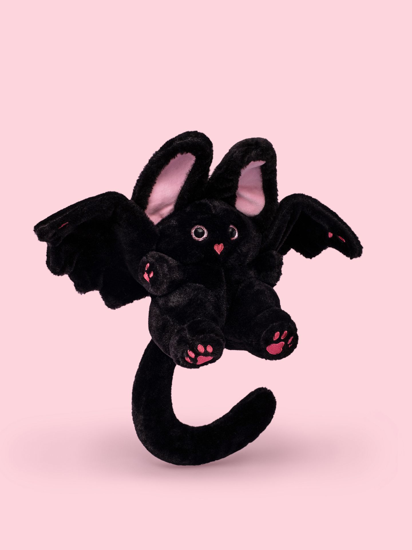 Внешность: Игрушка выполнена в насыщенном чёрном цвете с бархатистой текстурой, большими выразительными глазами и детализированными перепончатыми крыльями, которые так и хочется расправить для полёта.