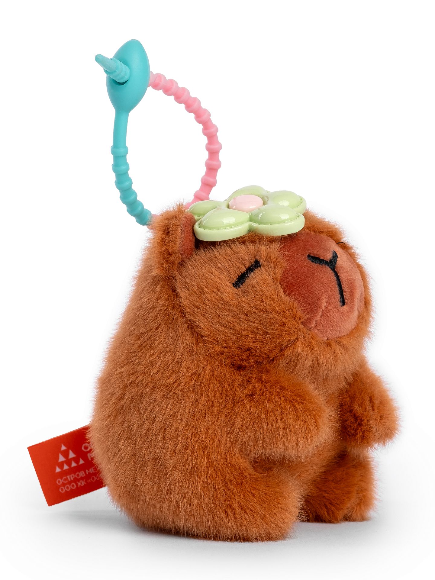Игрушка подвесная "Капибара с цветком", коричневая, 10 см