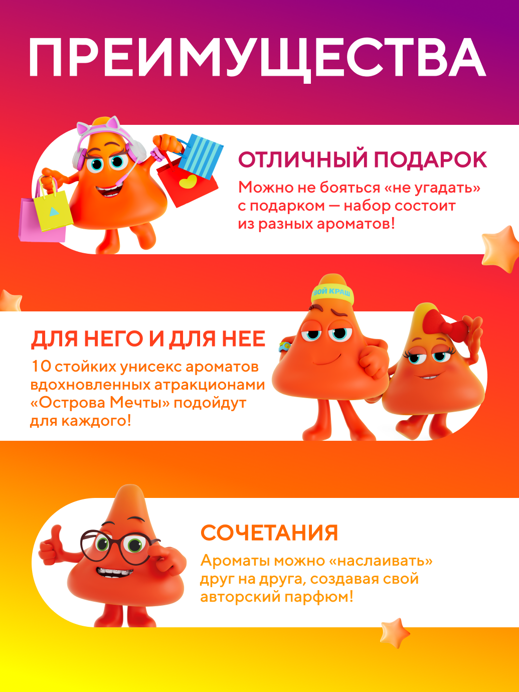 Отправляйтесь в путешествие по парку развлечений «Остров Мечты» снова вместе с новой коллекцией ароматов. Каждый флакон — возможность почувствовать атмосферу приключений, пережить самые яркие эмоции и впечатления и поделиться ими с другими.