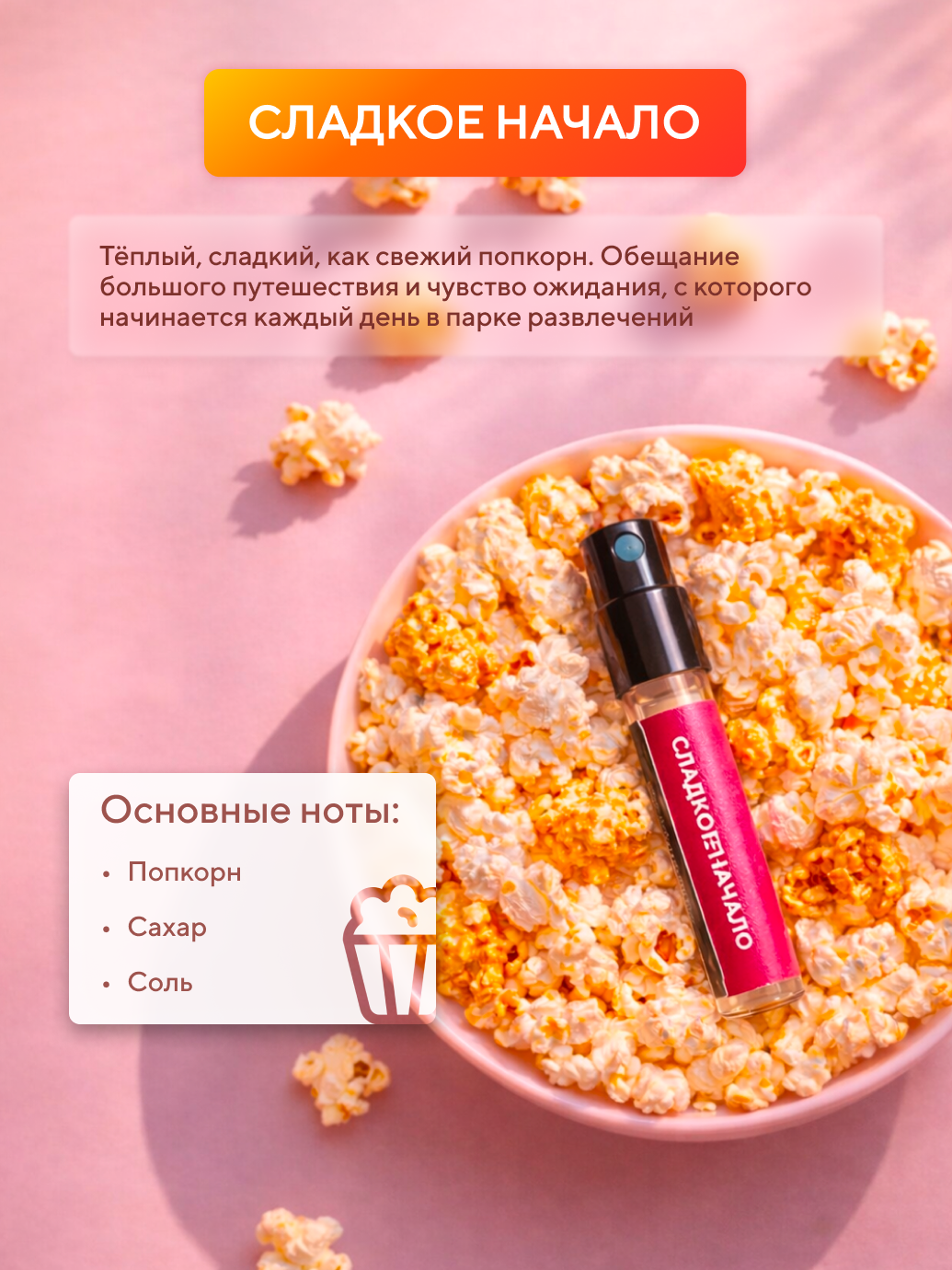 Тёплый, хрустящий, сладкий, как только что приготовленный попкорн. Звучит как настоящее обещание большого путешествия, пробуждая внутри то самое чувство ожидания чуда, с которого начинается каждый день в парке развлечений.