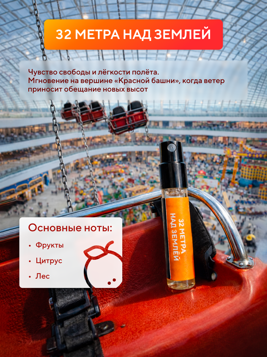 Чувство свободы, в котором сосредоточена лёгкость полёта. Мгновение, когда сердце замирает на вершине «Красной башни», а ветер приносит обещание новых высот. Аромат для тех, кто знает, что всё невозможное возможно.